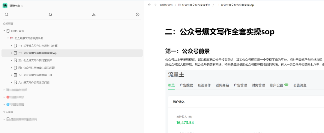 团队开始测试,目前不少账号效果起来了,收入从几百到上千不等,操作中我们把操作的流程,使用方法,使用工具全部整理,研究学习市面上操作这个项目的团队,吸收别人精华,结合我们自己的操作整理了玩赚公众号爆文写作全套操作手册。