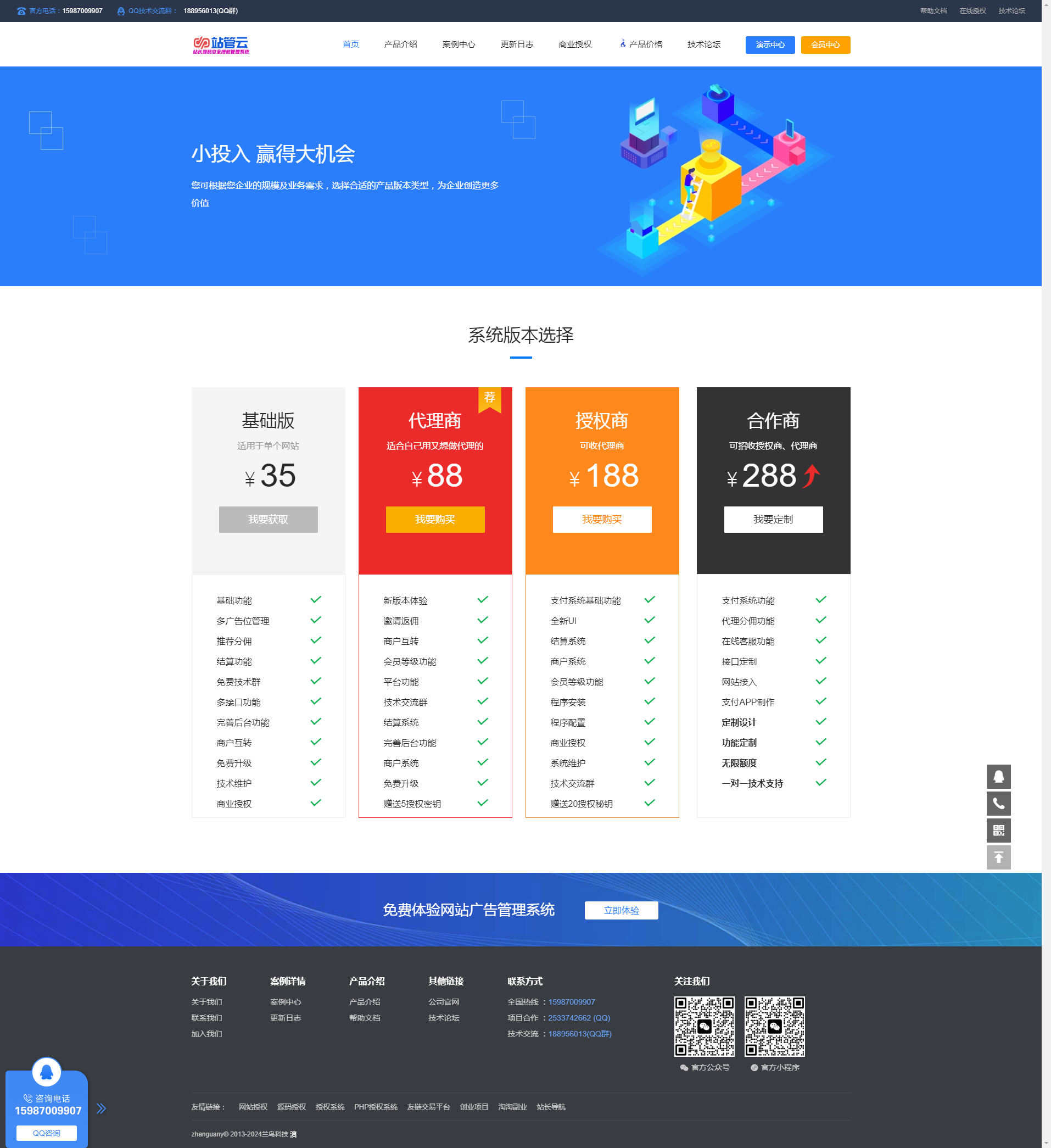 1、网站基本管理、系统设置、公告设置、接口设置、价格设置、下载设置