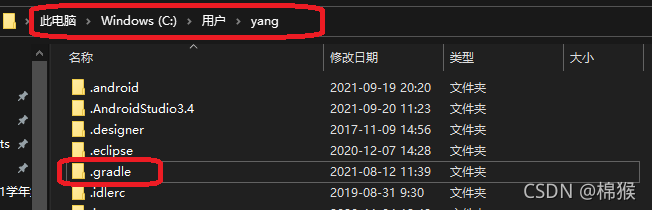 可以将.gradle文件夹转移到其他盘中,为C盘瘦身。
